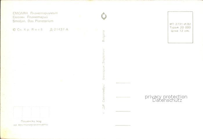 Smoljan Planetarium postalisch nicht gelaufen Erhaltung siehe scans