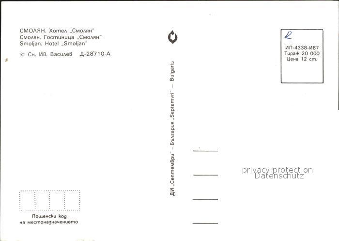 Smolyan Hotel postalisch nicht gelaufen Erhaltung siehe scans