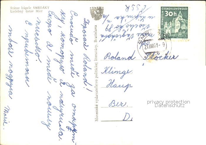 old postcard Smrdaky Liecebny ustav Mier postalisch gelaufen Erhaltung siehe scans