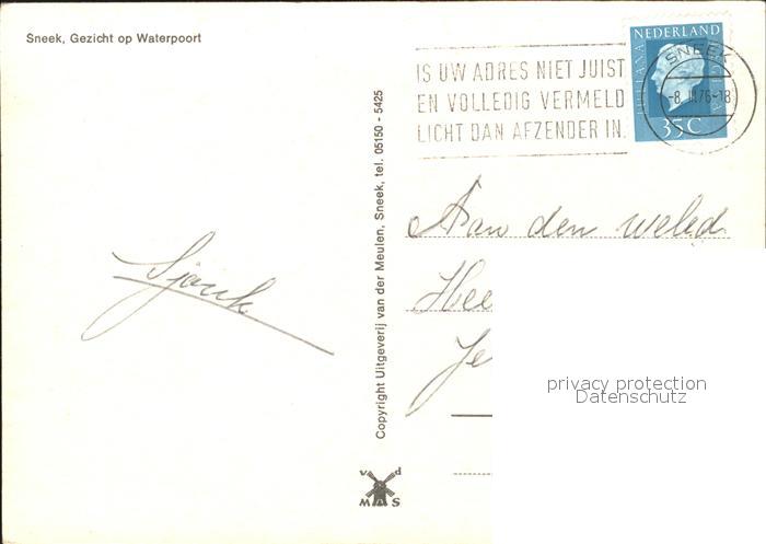 old postcard Sneek Gezicht op Waterpoort postalisch gelaufen Erhaltung siehe scans