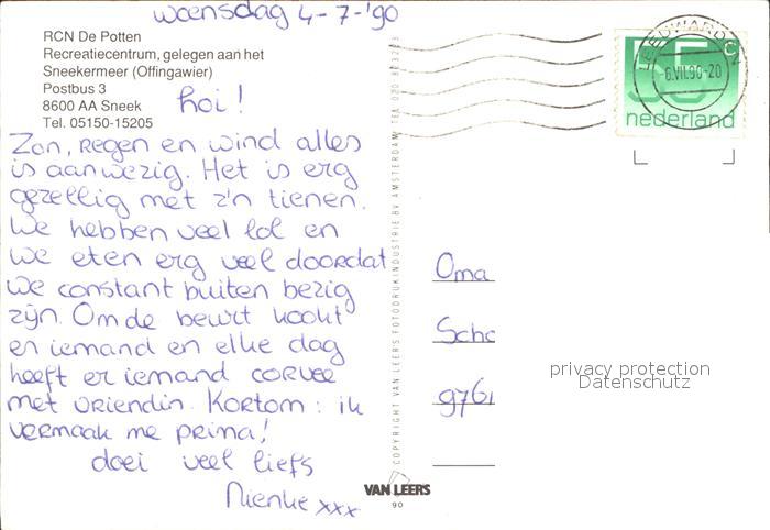 old postcard Sneek RCN De Potten Recreatiecentrum Segelpartien Restauration Spielplatz postalisch gelaufen Erhaltung siehe scans