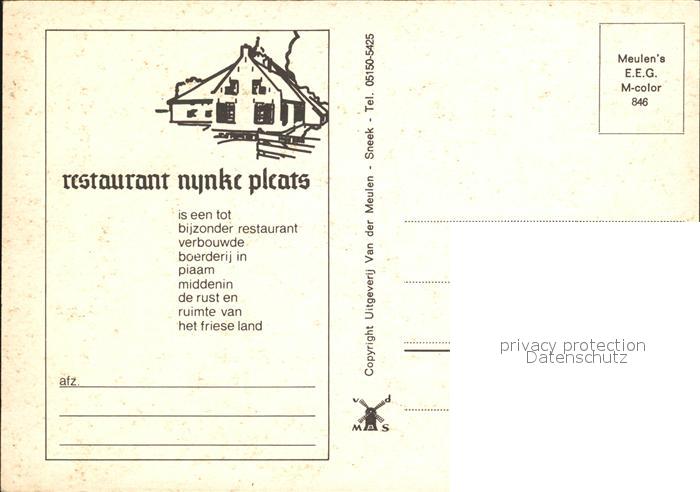 Sneek Restaurant Nynke Pleats postalisch nicht gelaufen Erhaltung siehe scans