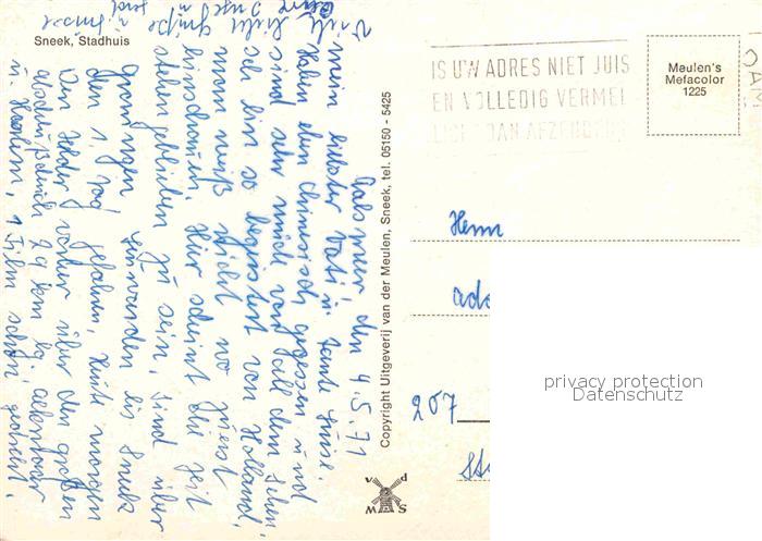 old postcard Sneek Stadhuis postalisch gelaufen Erhaltung siehe scans [WerneD78]