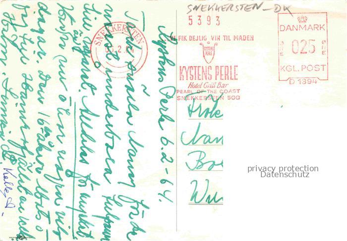 74141546 old postcard Snekkersten Helsingor Frederiksborg DK Hotel Grillbar Kystens Perle postalisch gelaufen Erhaltung siehe scans [FriedD77] KatCode: 11100