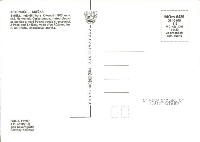 Snezka Schneekoppe Bergstation Seilbahn Krkonose postalisch nicht gelaufen Erhaltung siehe scans