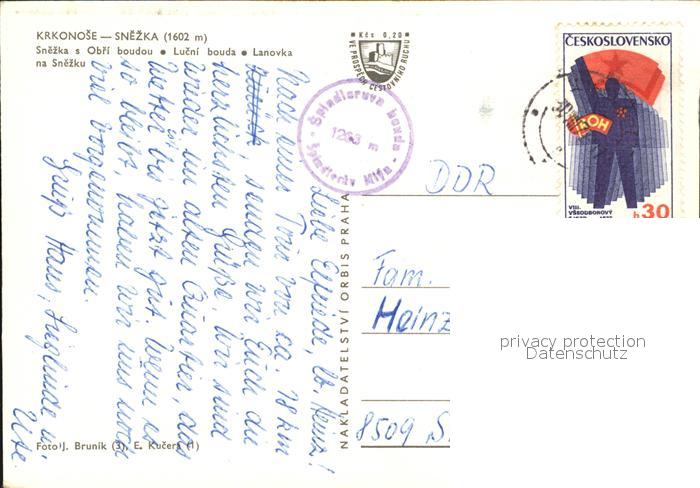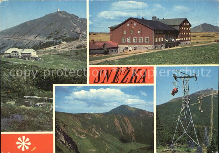 old postcard Snezka Schneekoppe Krkonose Sessellift postalisch gelaufen Erhaltung siehe scans