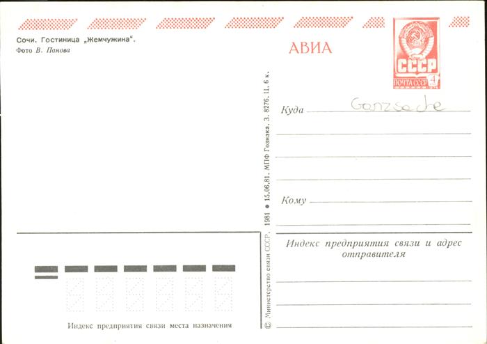 Sochi postalisch nicht gelaufen Ganzsache (eingedruckte Briefmarke) Erhaltung siehe scans