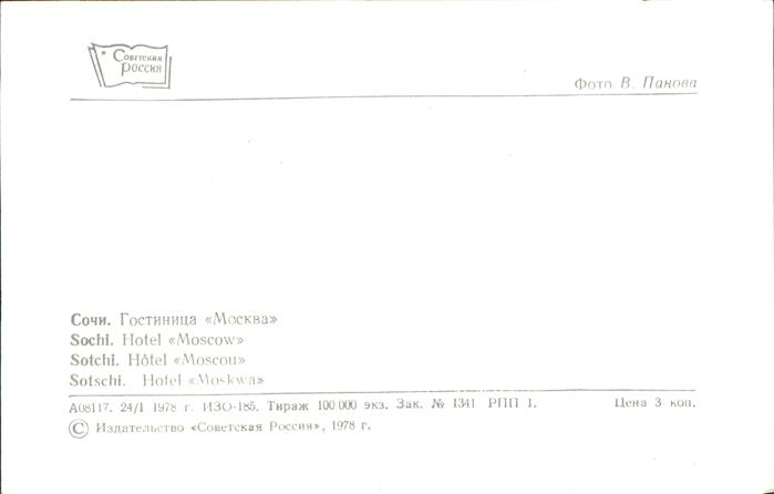 Sochi Hotel Moskau postalisch nicht gelaufen