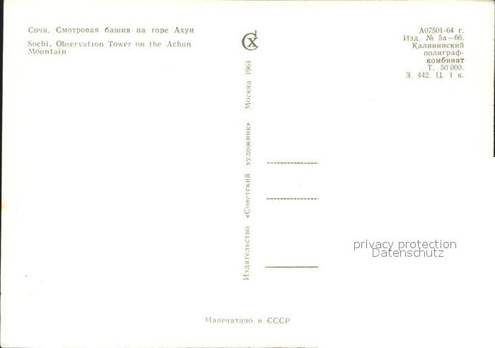 Sochi Observation Tower Achun Mountain postalisch nicht gelaufen Erhaltung siehe scans