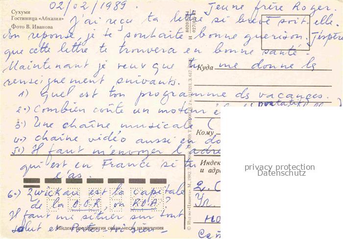 74042013 old postcard Sochumi Hotel Abhasiya postalisch gelaufen Erhaltung siehe scans [IrynaD87] KatCode: 13050
