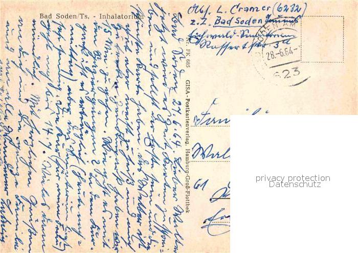 72796935 alte Postkarte Soden Taunus Bad Inhalatorium postalisch gelaufen Erhaltung siehe scans [KathaD81] KatCode: 11110006436001