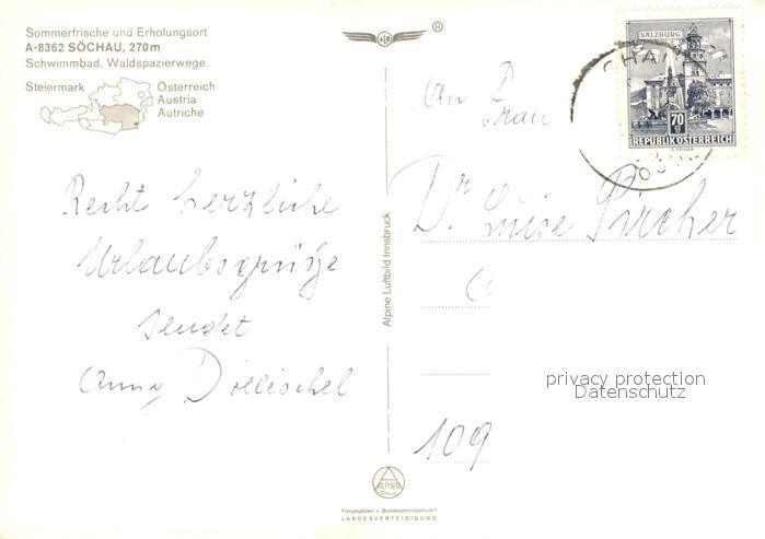 73079236 alte Postkarte Soechau Fliegeraufnahme postalisch gelaufen Erhaltung siehe scans [KathaD81] KatCode: 11390224060512