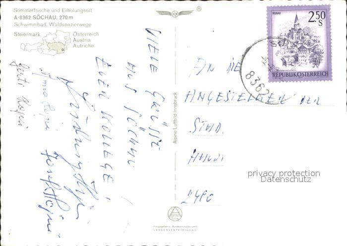 72053056 alte Postkarte Soechau Sommerfrische Erholungsort Wappen Fliegeraufnahme postalisch gelaufen Erhaltung siehe scans KatCode: 11390224060512