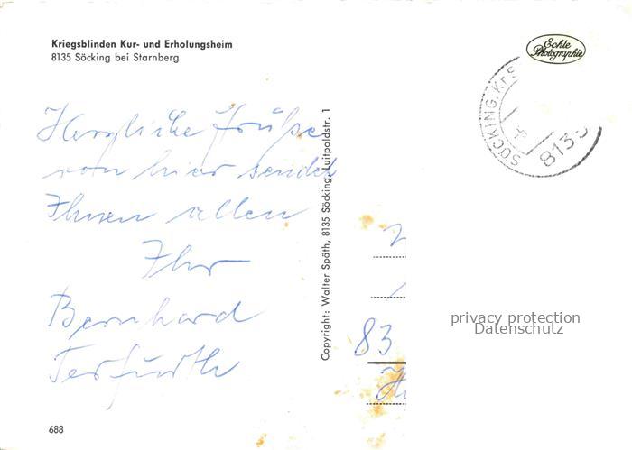 34142973 alte Postkarte Soecking Starnberg Bayern Kriegsblinden Kur- und Erholungsheim postalisch gelaufen Erhaltung siehe scans [FriedD77] KatCode: 11110009188139