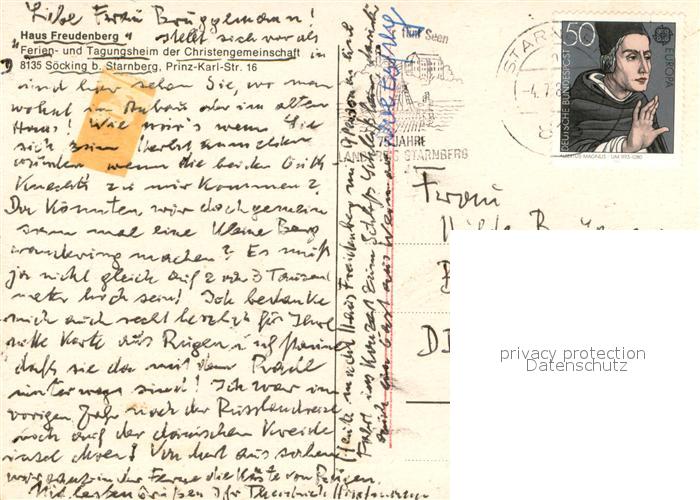 73636216 alte Postkarte Soecking Starnberg Haus Freudenberg Ferien- und Tagungsheim der Christengemeinschaft postalisch gelaufen Erhaltung siehe scans [FriedD77] KatCode: 11110009188139