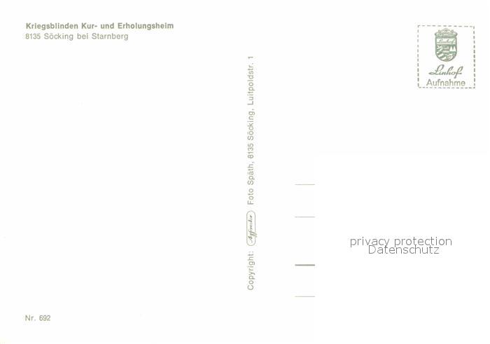 72916425 Soecking Starnberg Kriegsblinden Kur- und Erholungsheim postalisch nicht gelaufen Erhaltung siehe scans [LiesaD40] KatCode: 11110009188139