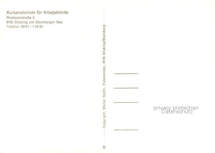 73332179 Soecking Starnberg Kursanatorim fuer Kriegsblinde postalisch nicht gelaufen Erhaltung siehe scans [LiesaD40] KatCode: 11110009188139