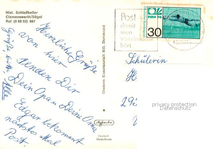 73711693 alte Postkarte Soegel Historischer Schlosskeller Clemenswerth postalisch gelaufen Erhaltung siehe scans [WerneD78] KatCode: 11110003454047