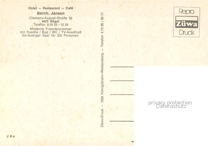 73704562 Soegel Hotel Restaurant Cafe Jansen Gastraum Saal postalisch nicht gelaufen Erhaltung siehe scans [FriedD77] KatCode: 11110003454047