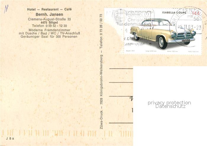 73641564 alte Postkarte Soegel Hotel Restaurant Cafe Jansen postalisch gelaufen Erhaltung siehe scans [FriedD77] KatCode: 11110003454047