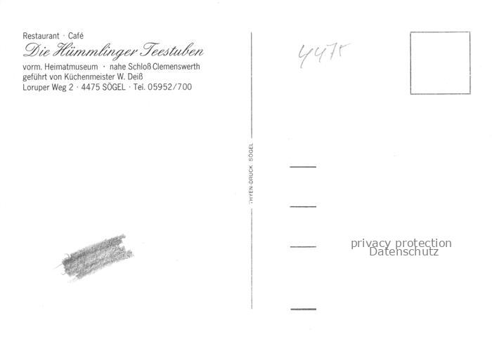 74037498 Soegel Restaurant Cafe Die Huemlinger Teestuben postalisch nicht gelaufen Erhaltung siehe scans [WerneD78] KatCode: 11110003454047