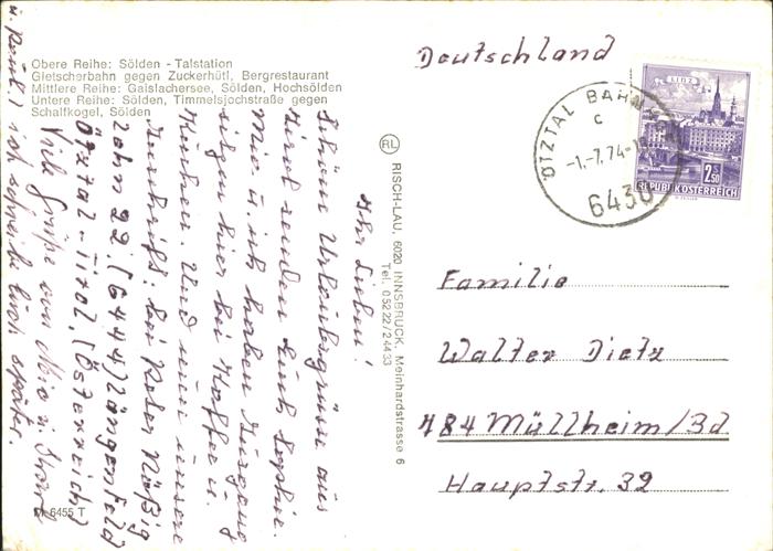 71456584 alte Postkarte Soelden postalisch gelaufen KatCode: 11390334070220