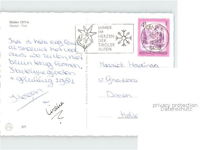 72108558 alte Postkarte Soelden oetztal postalisch gelaufen Erhaltung siehe scans KatCode: 11390334070220
