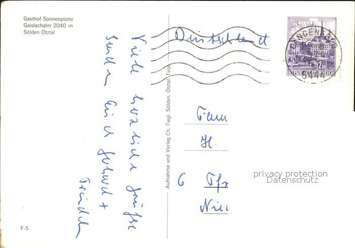 72497025 alte Postkarte Soelden oetztal Berggasthof Sonnenplatte Gaislachalm oetztaler Alpen postalisch gelaufen Erhaltung siehe scans KatCode: 11390334070220