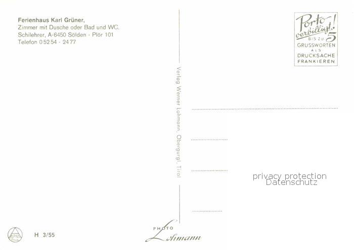 72893760 Soelden oetztal Ferienhaus Karl Gruener postalisch nicht gelaufen Erhaltung siehe scans [AndreD76] KatCode: 11390334070220