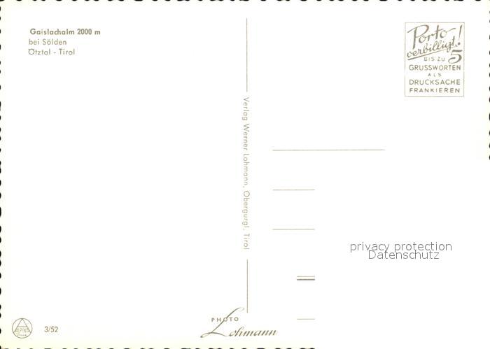 72591300 Soelden oetztal Gaislachalm postalisch nicht gelaufen Erhaltung siehe scans [WerneD78] KatCode: 11390334070220