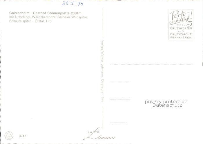71962925 Soelden oetztal Gaislachalm Gasthof Sonnenplatte postalisch nicht gelaufen Erhaltung siehe scans KatCode: 11390334070220
