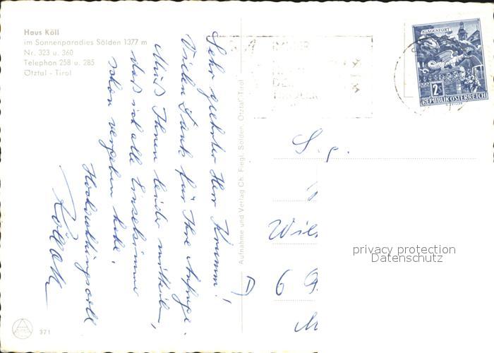 12570819 alte Postkarte Soelden oetztal Haus Koell postalisch gelaufen Erhaltung siehe scans [NatalD47] KatCode: 11390334070220