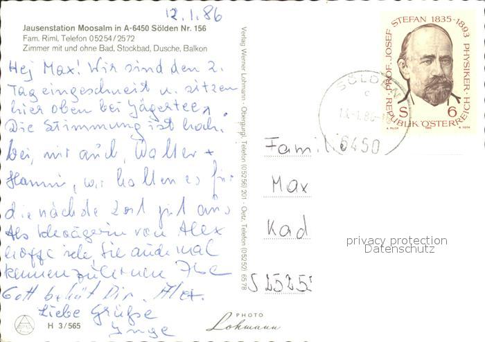 72466484 alte Postkarte Soelden oetztal Jausenstation Moosalm Gaststube postalisch gelaufen Erhaltung siehe scans KatCode: 11390334070220