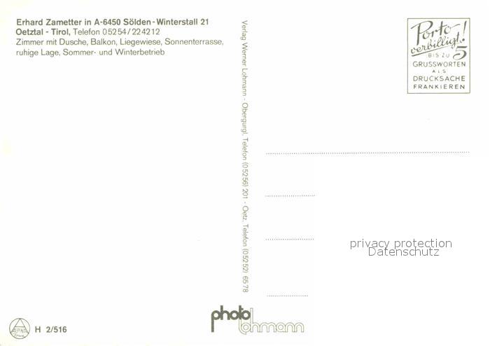 72855151 Soelden oetztal Jausestation Zametter postalisch nicht gelaufen Erhaltung siehe scans [AndreD76] KatCode: 11390334070220