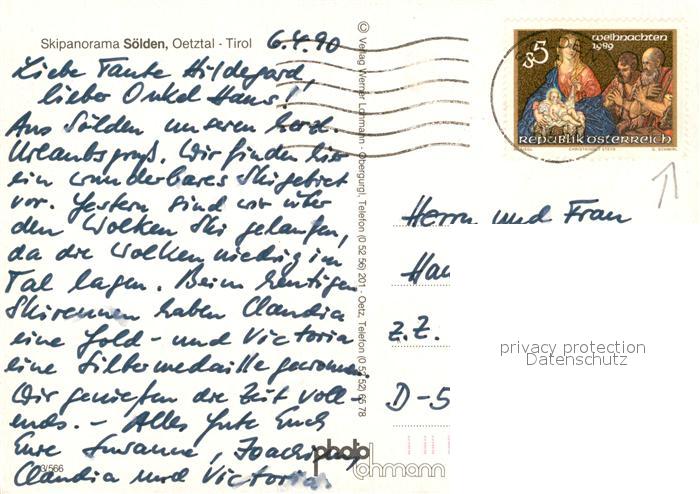 73288076 alte Postkarte Soelden oetztal Ortungskarte Watzespitze Rostizkogel postalisch gelaufen Erhaltung siehe scans [NatalD47] KatCode: 11390334070220