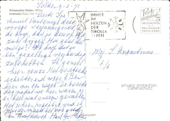 72092958 alte Postkarte Soelden oetztal Skiparadies Innerwald postalisch gelaufen Erhaltung siehe scans KatCode: 11390334070220