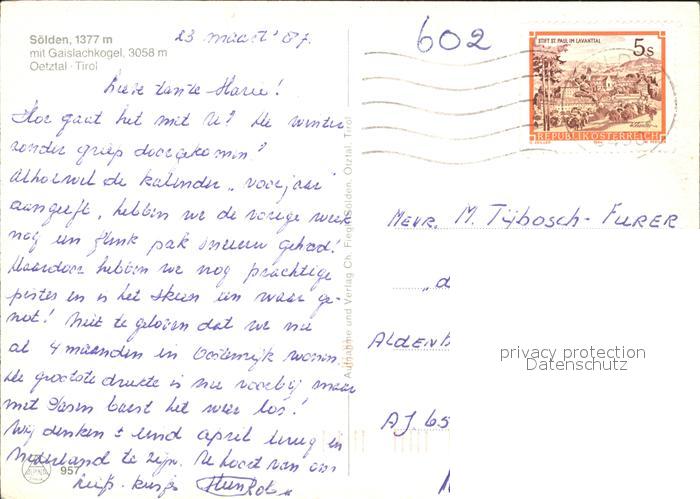 72093100 alte Postkarte Soelden oetztal Teilansicht mit Gaislachkogel postalisch gelaufen Erhaltung siehe scans KatCode: 11390334070220