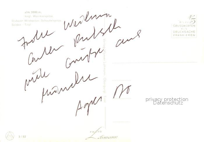 73083036 Soelden oetztal Warnkarspitze Stubaier Wildspitze postalisch nicht gelaufen Erhaltung siehe scans [NatalD47] KatCode: 11390334070220