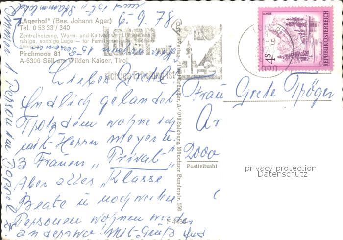 72293271 alte Postkarte Soell Tirol Agerhof postalisch gelaufen Erhaltung siehe scans KatCode: 11390335070526
