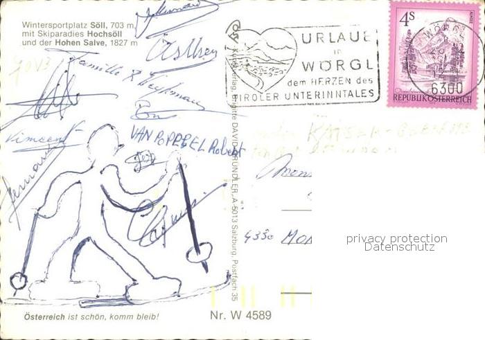 72230114 alte Postkarte Soell Tirol am Wilden Kaiser Ortsansicht mit Kirche Wintersportplatz Hohe Salve postalisch gelaufen Erhaltung siehe scans KatCode: 11390335070526