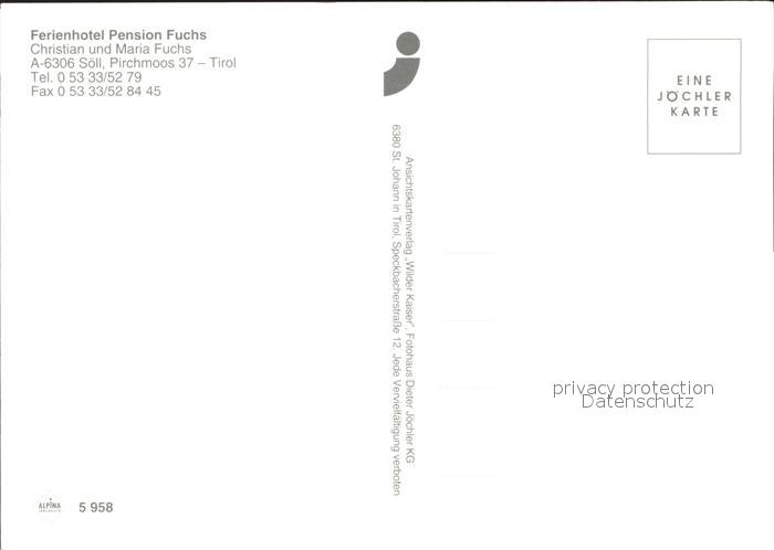 42923827 Soell Tirol Ferienhotel Fuchs postalisch nicht gelaufen Erhaltung siehe scans [WerneD48] KatCode: 11390335070526