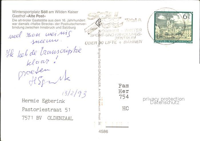 72317680 alte Postkarte Soell Tirol Gasthaus Alte Post postalisch gelaufen Erhaltung siehe scans KatCode: 11390335070526