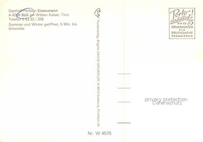 72662000 Soell Tirol Gasthaus Pension Eisenmann postalisch nicht gelaufen Erhaltung siehe scans [AndreD76] KatCode: 11390335070526