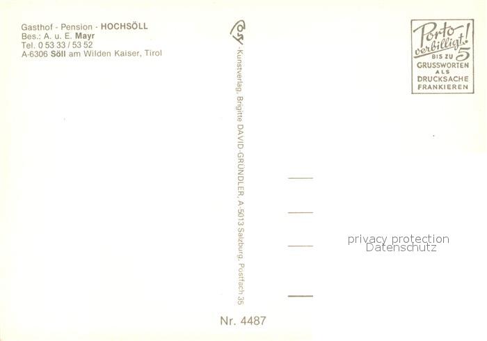 73110474 Soell Tirol Gasthof Hochsoell Wilder Kaiser postalisch nicht gelaufen Erhaltung siehe scans [NatalD47] KatCode: 11390335070526