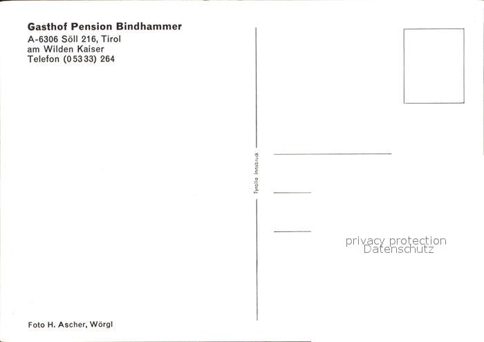 72437316 Soell Tirol Gasthof Pension Bindhammer postalisch nicht gelaufen Erhaltung siehe scans KatCode: 11390335070526