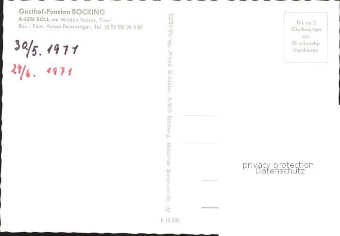 72113807 Soell Tirol Gasthof Pension Bocking am Wilden Kaiser postalisch nicht gelaufen Erhaltung siehe scans KatCode: 11390335070526