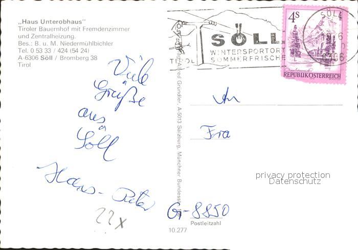 72048984 alte Postkarte Soell Tirol Haus Unterobhaus postalisch gelaufen Erhaltung siehe scans KatCode: 11390335070526