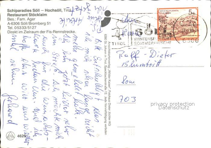 72922940 alte Postkarte Soell Tirol Hochsoell Restaurant Stoecklalm Hohe Salve postalisch gelaufen Erhaltung siehe scans [PaolaD17] KatCode: 11390335070526