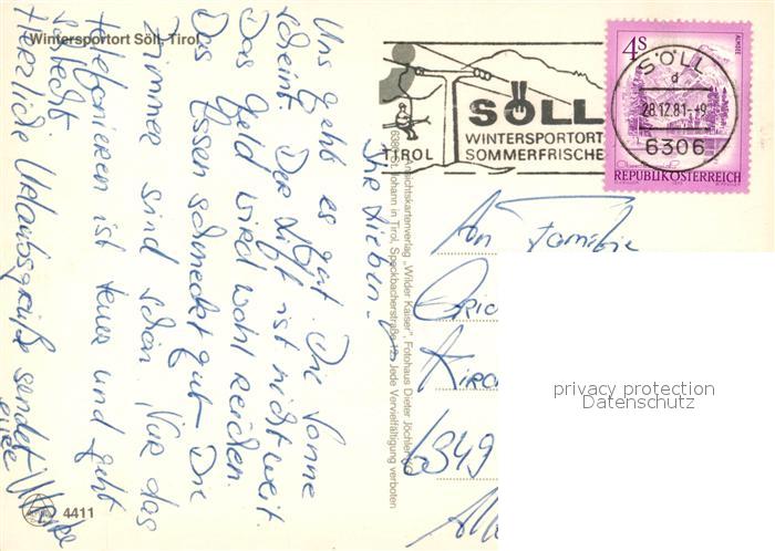 73592639 alte Postkarte Soell Tirol Kirche Wintersportplatz postalisch gelaufen Erhaltung siehe scans [KathaD81] KatCode: 11390335070526
