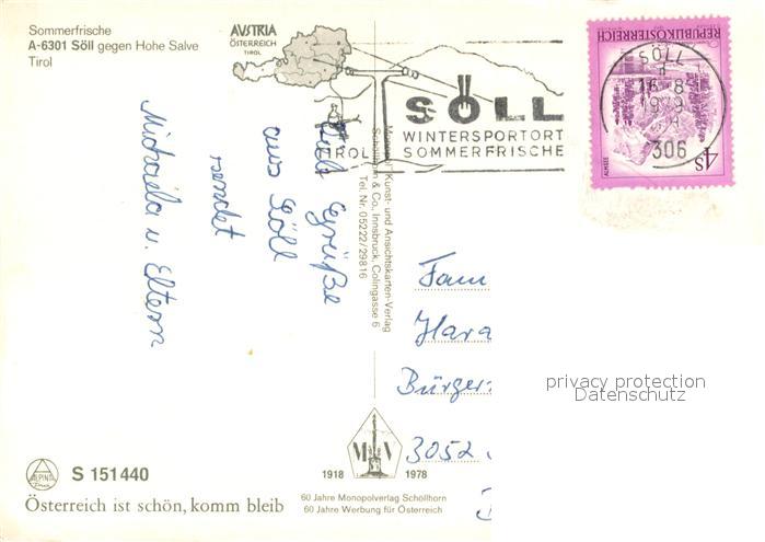 73628684 alte Postkarte Soell Tirol mit Hohe Salve Drachenflieger postalisch gelaufen Erhaltung siehe scans [WerneD78] KatCode: 11390335070526
